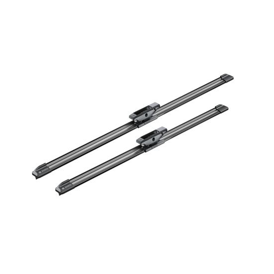 Les Bosch Aerotwin ont une conception aérodynamique et n'ont pas d'articulations classiques. À l'intérieur, il y a un rail de stabilisation spécial Evodium, qui est chargé d'adhérer au verre et de la rigidité de l'essuie-glace. Deux types de caoutchouc sont utilisés dans la construction du balai d'essuie-glace. En haut, il y a une partie molle responsable d'un fonctionnement silencieux, tandis qu'en bas il y a une partie dure, qui est conçue pour nettoyer avec précision le verre de la neige, de l'eau, etc. De plus, il est recouvert d'un revêtement spécial, ce qui permet un meilleur glissement sur le verre, de sorte que la force de frottement soit aussi faible que possible. Les essuie-glaces Bosch Aerotwin remplissent leur rôle même à grande vitesse grâce au becquet intégré sur toute la longueur de l'essuie-glace, ce qui provoque la ruée vers l'air pour presser le balai d'essuie-glace contre le pare-brise.
