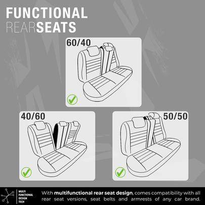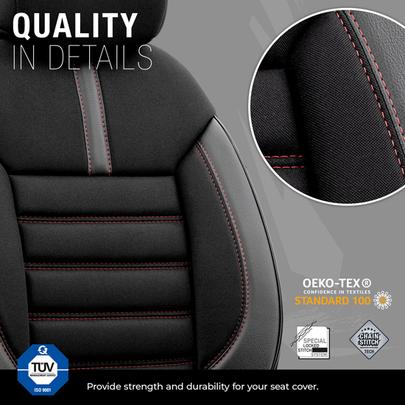 Parfait pour ceux qui recherchent à la fois style et protection, ce jeu de housses apporte une touche de sportivité et de modernité à votre intérieur automobile.